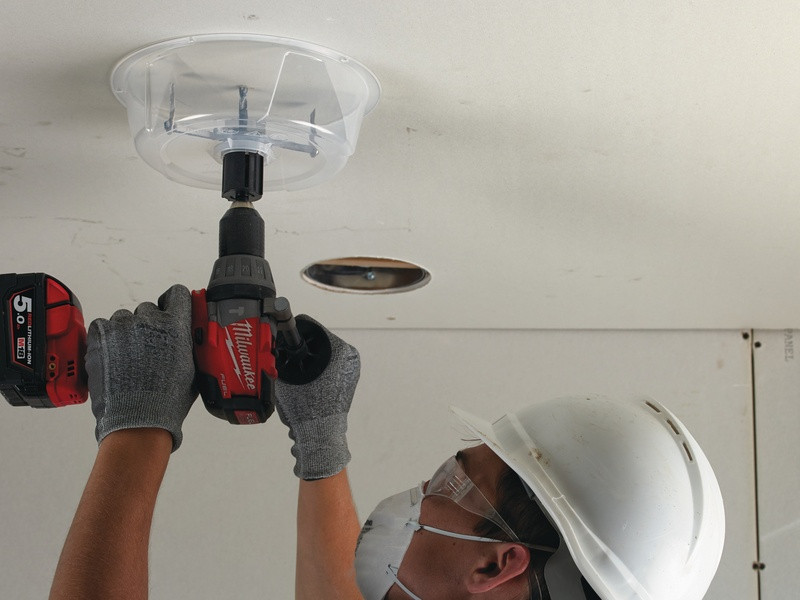 - Na rezanie otvorov s väčším priemerom pre klimatizačné potrubia, ventilátory, zabudované svietidlá a stropné reproduktory.