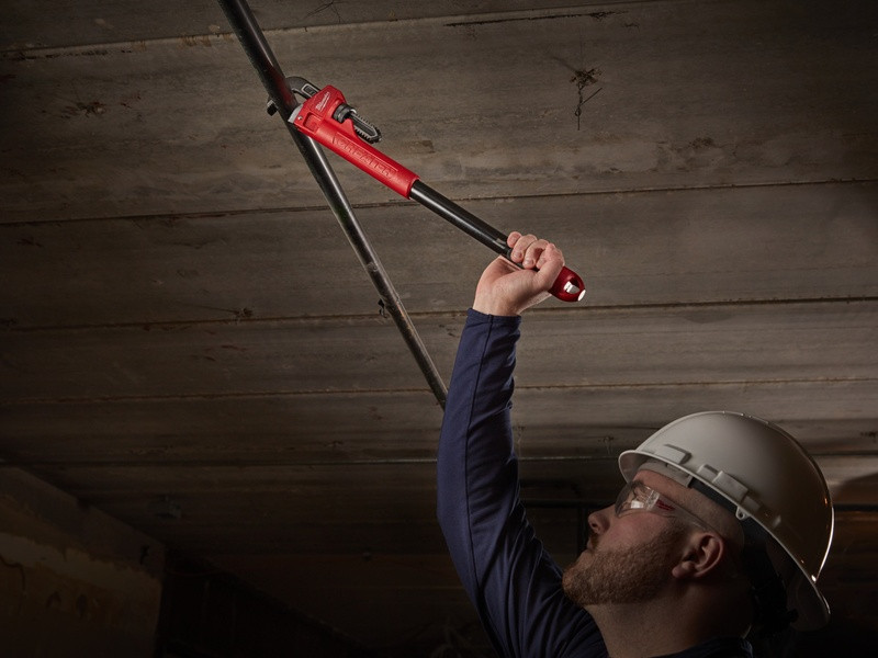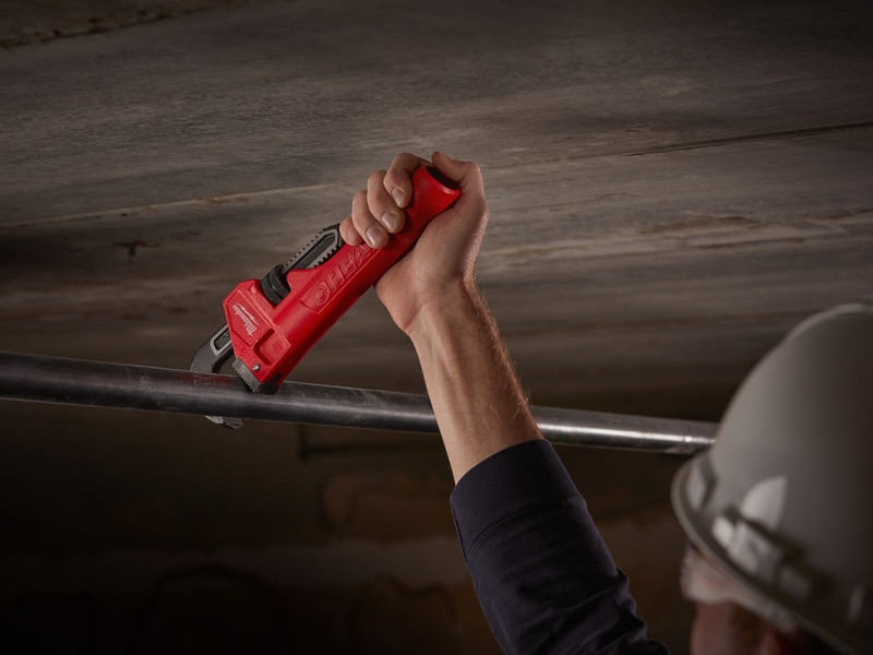 - Otvorený skus čeľustí pre bezpečné uchopenie potrubia a rúrok.