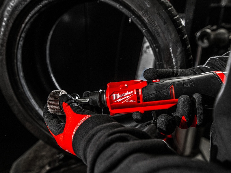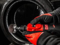 - Nízkootáčková brúska na hrubovanie pneumatík M12 FUEL™ má volič režimu dvoch rýchlostí pre vystružovanie a leštenie