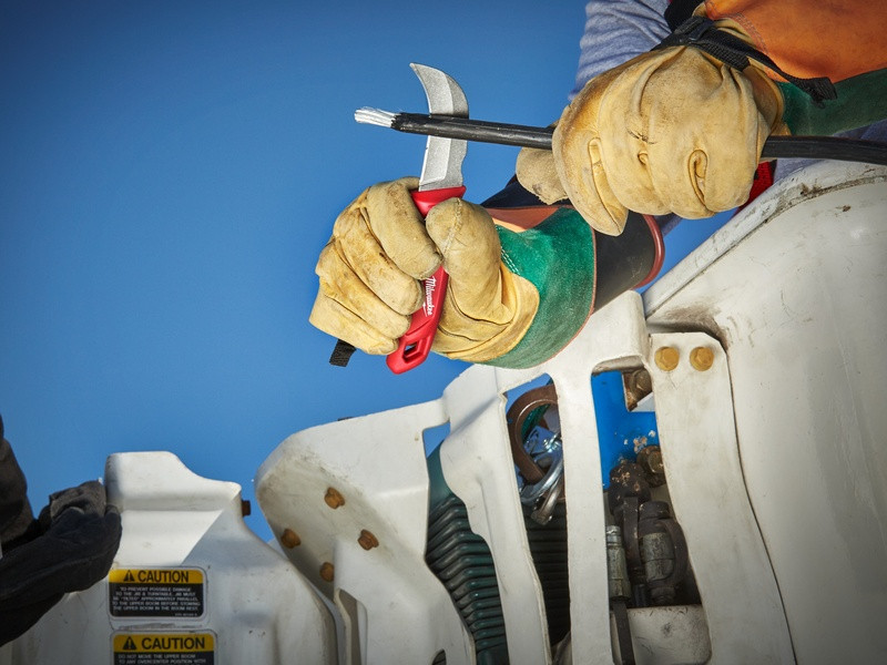 - Zahnutá čepeľ z nehrdzavejúcej ocele - ideálna na odstraňovanie izolácie.