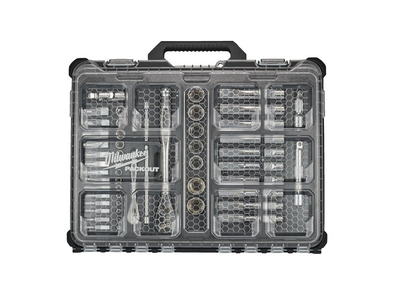 MILWAUKEE PACKOUT™ 63dielna sada račne a nástrčných kľúčov 1/4" a 1/2"