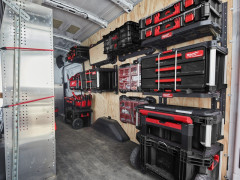 - Montážne lišty E -Track, pre maximálnu univerzálnosť, je možné namontovať na steny vo vozidle, obchodoch alebo garážach.