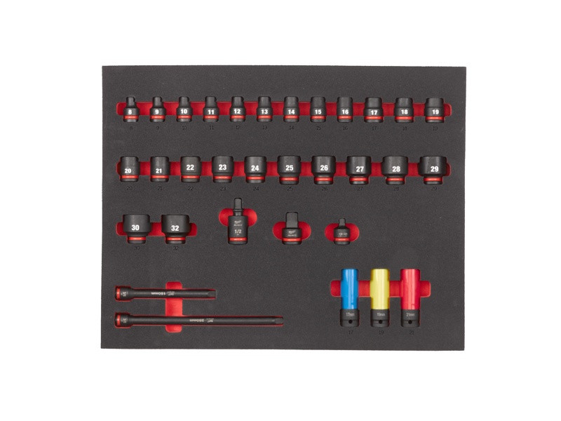 MILWAUKEE Penová vložka s 1/2" Impact Duty nástrčnými kľúčmi - 32ks