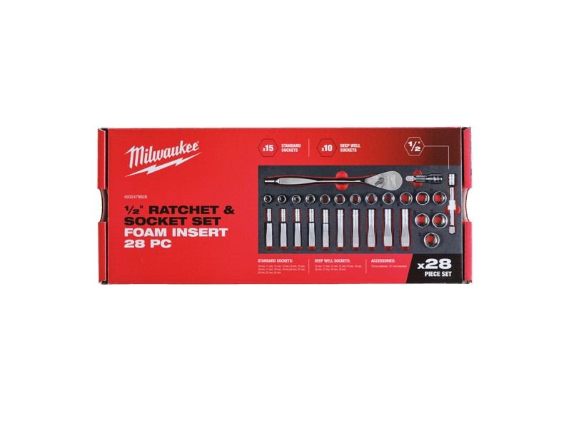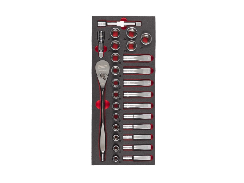 MILWAUKEE Penová vložka s 1/2" nástrčnými kľúčmi a račňou (28ks)