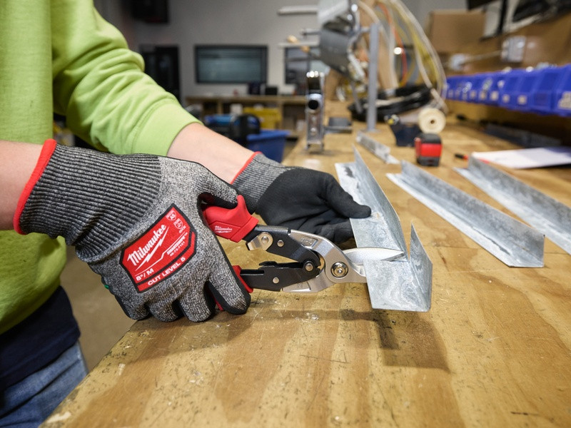 - Nožnice na plech: Na krátke, rovné a zakrivené rezy. Ideálne na rezy s úzkym polomerom a zárezy.