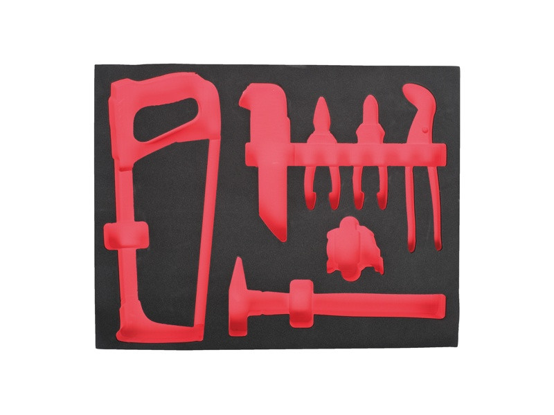 - Laserom vyrezávané obrysy na presné uloženie náradia.