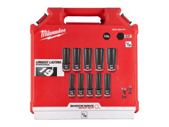 MILWAUKEE Priemyselné hlavice Shockwave rázové 1/2" predĺžené sada - 10ks