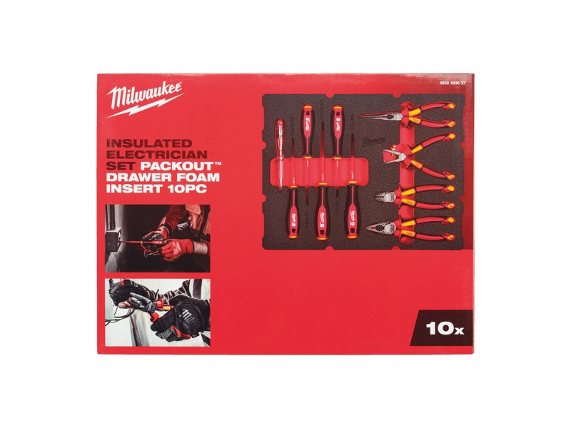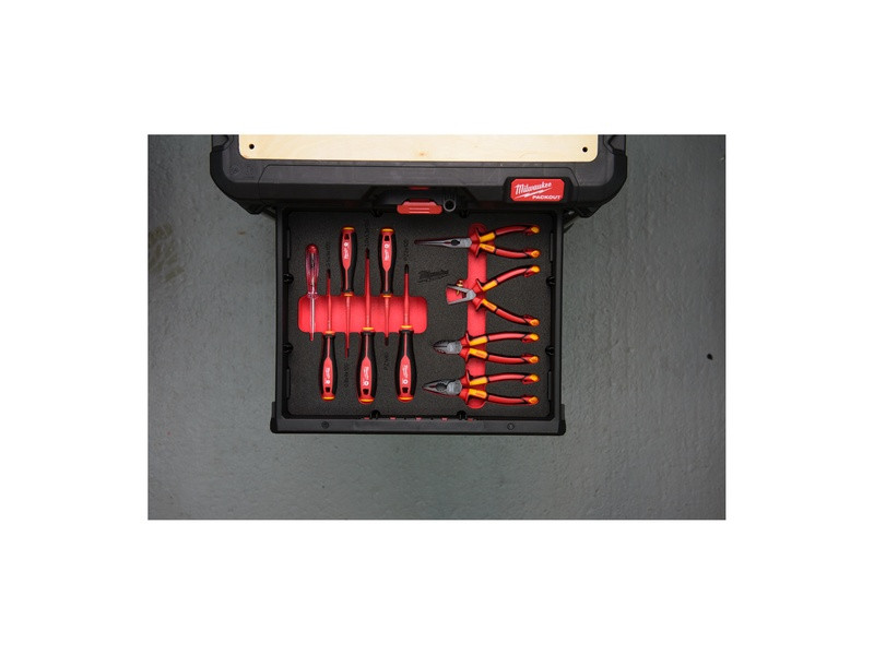 MILWAUKEE Sada PACKOUT Izol. el.kliešte,skrutkovače v penovej vložke do šuflíka 9ks
