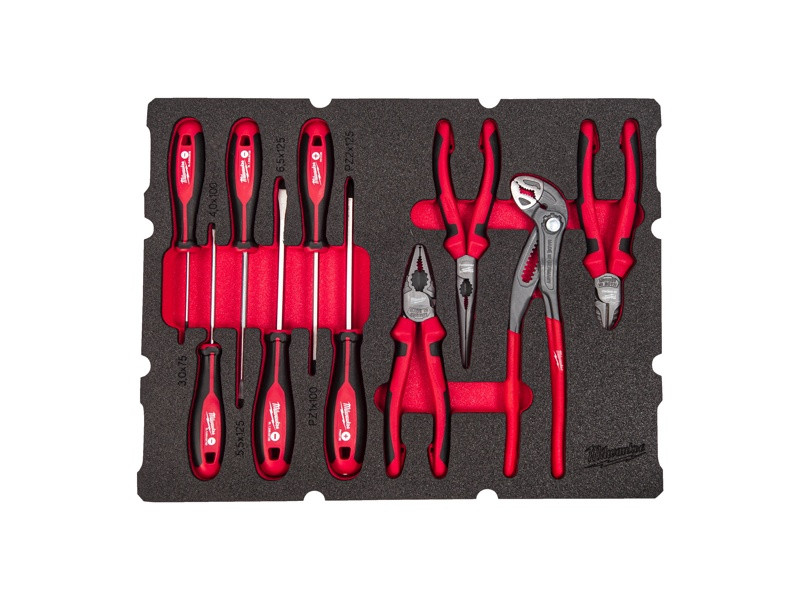 MILWAUKEE Sada PACKOUT kliešte,skrutkovače v penovej vložke do šuflíka 10ks