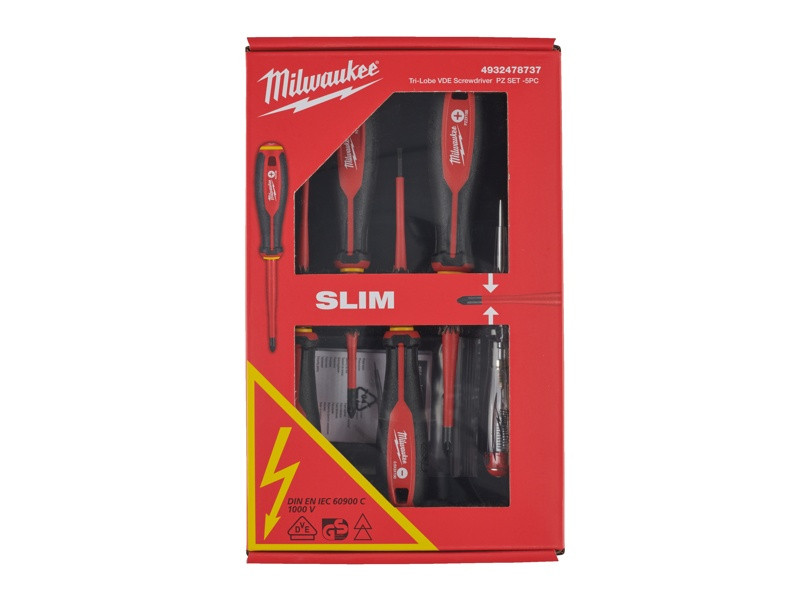 MILWAUKEE Sada skrutkovačov VDE - 5ks (SL0,5X3X100, SL0,8X4X100, PZ1 X80, PZ2 X100, tester)