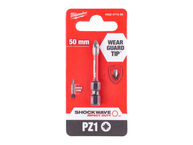 - Špeciálne navrhnutá oceľ – Oceľ Milwaukee® so špeciálnym zložením zaisťuje, že bity Shockwave sú odolnejšie voči rázom pri skrutkovaní.