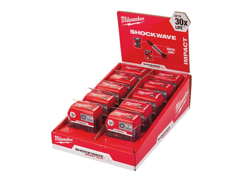 - Špeciálne navrhnutá oceľ – Oceľ Milwaukee® so špeciálnym zložením zaisťuje, že bity Shockwave sú odolnejšie voči rázom pri skrutkovaní.