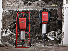 Transportný vozík so 4 miestami pre sekáče a záves kábla uľahčuje prepravu kladiva po pracovisku
