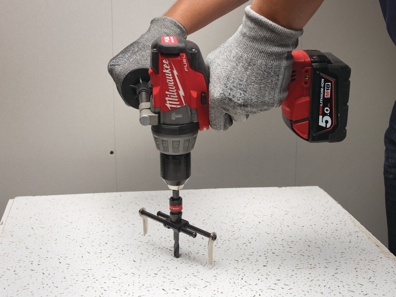 - Na rezanie otvorov s väčším priemerom pre klimatizačné potrubia, ventilátory, zabudované svietidlá a stropné reproduktory.