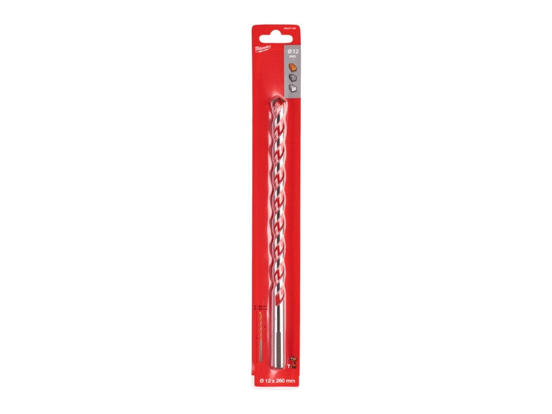 - Vrtáky s hrotom z karbidu volfrámu (TCT) umožňujú vŕtanie do betónu, pórobetónových blokov, muriva, bridlice a žuly.