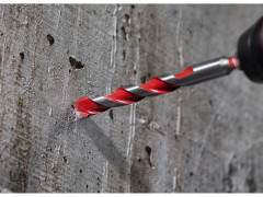 - Vrtáky s hrotom z karbidu volfrámu (TCT) umožňujú vŕtanie do betónu, pórobetónových blokov, muriva, bridlice a žuly.