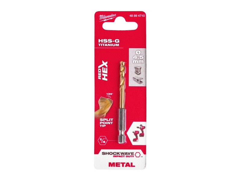 MILWAUKEE Vrták do kovu RED HEX HSS-G TiN O 4,5mm – 1ks