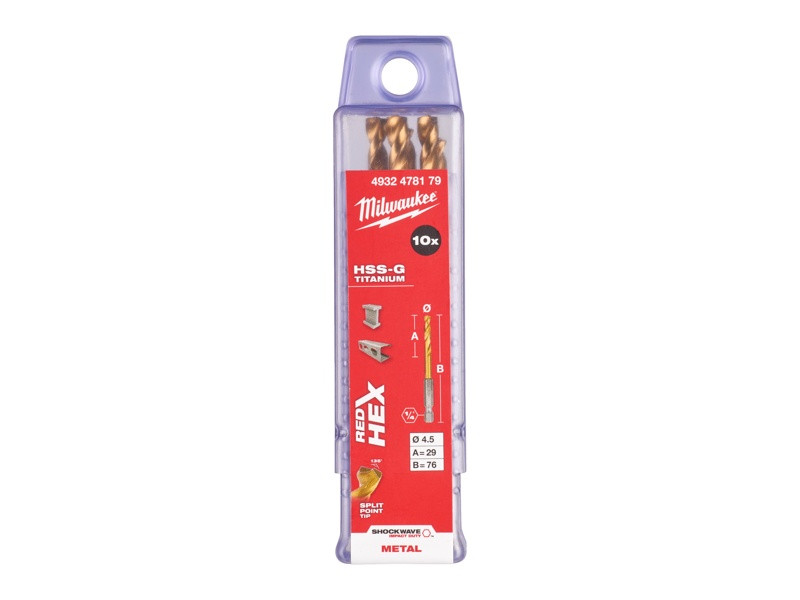 MILWAUKEE Vrták RedHex HSS-G Ti 4,5mm (10ks)