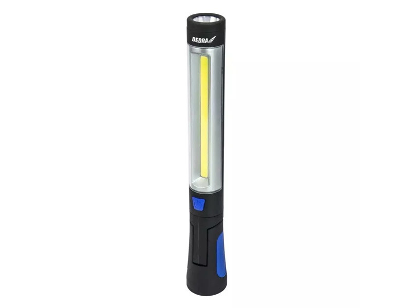 Výkon: 3W COB LED + 3W LED; kapacita batérie: 800 mAh; počet lúmenov: 250 lm; prevádzkový čas: 3h; zabudovaný magnet; puzdro z ABS