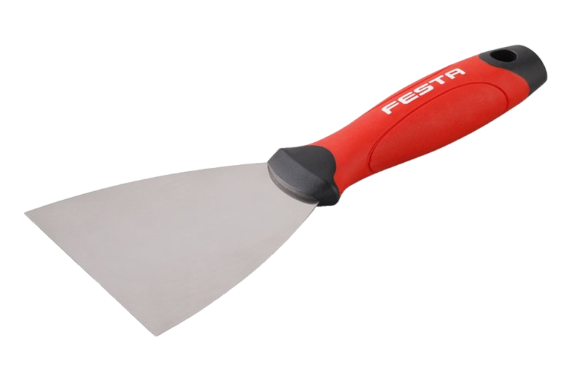 Špachtľa nerezová FESTA 80 mm s ergonomicky tvarovanou gumovou rúčkou. Je používaný v štukatérstve, maliarstve, natieračstve, opravách karosérií alebo pri umeleckej tvorbe a pod. Je vhodná na roztieranie sadry alebo iných tmeliacich hmôt či na odstraňovanie starej maľby a náterov.