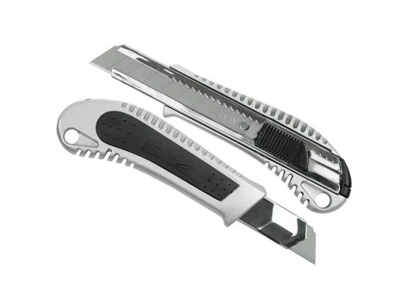 Šírka čepele: 18 mm; kryt: kov/guma; kovové vedenie; západka