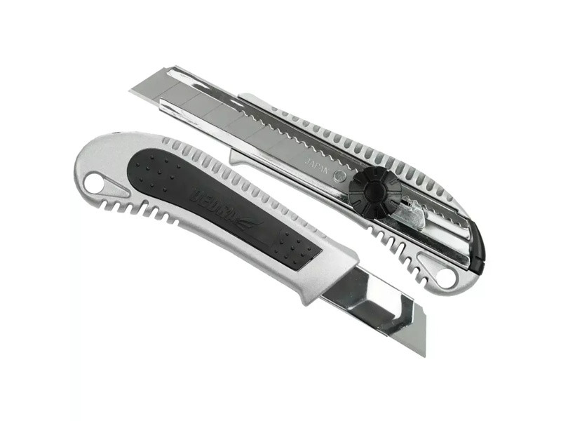 Šírka čepele: 18 mm; puzdro: kov/guma; kovové vedenie; gombík.