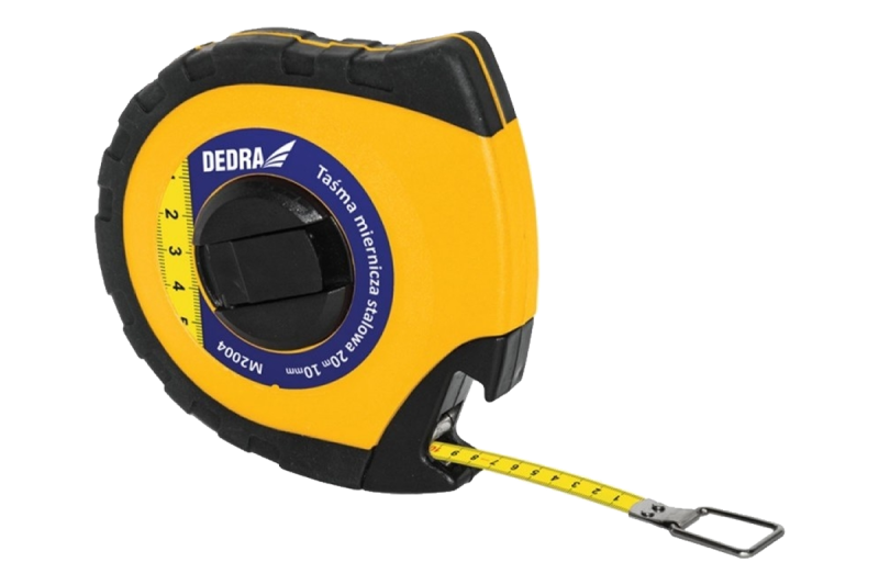 Meracie pásmo určená na meranie na veľké vzdialenosti. Užitočné doma, v garáži alebo na stavbe. Puzdro pásky je vyrobené z ľahkého, ale odolného materiálu, ktorý chráni meradlo pred poškodením. Páska vyrobená z ocele, zakončená širokou kovovou meracou rukoväťou. Puzdro obsahuje praktický, sklopný gombík na navíjanie pásky