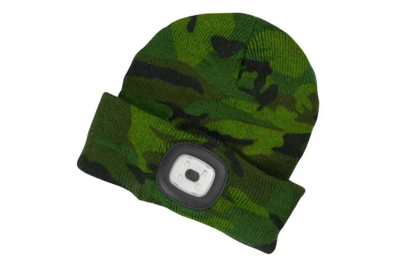 Pletená čiapka s čelným LED svetlom zelená maskáčová L