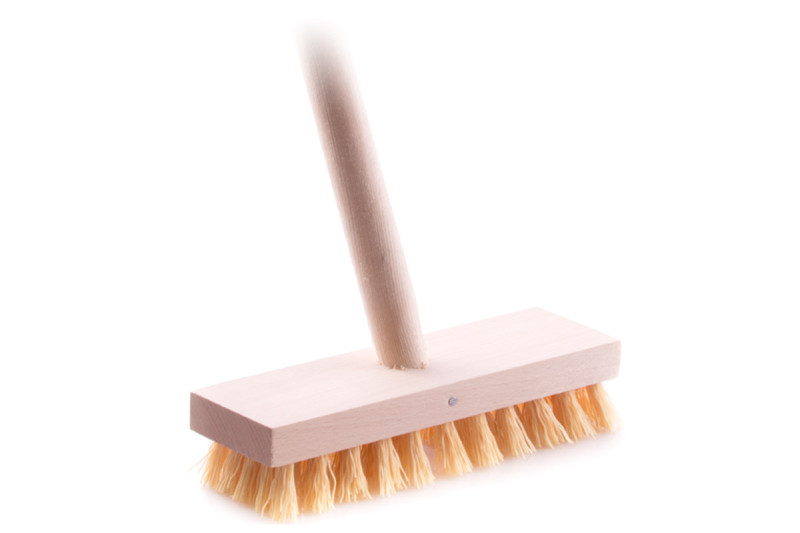 Kartáč na umývanie podlahy má drevenú rukoväť. Na násade sú vlnité syntetické vlákna. Drevená tyč meria 140 cm. Používa sa v interiéry aj v exteriéry.