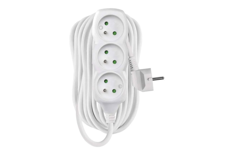 Predlžovací kábel 10 m / 3 zásuvky / biely / PVC / 1 mm2