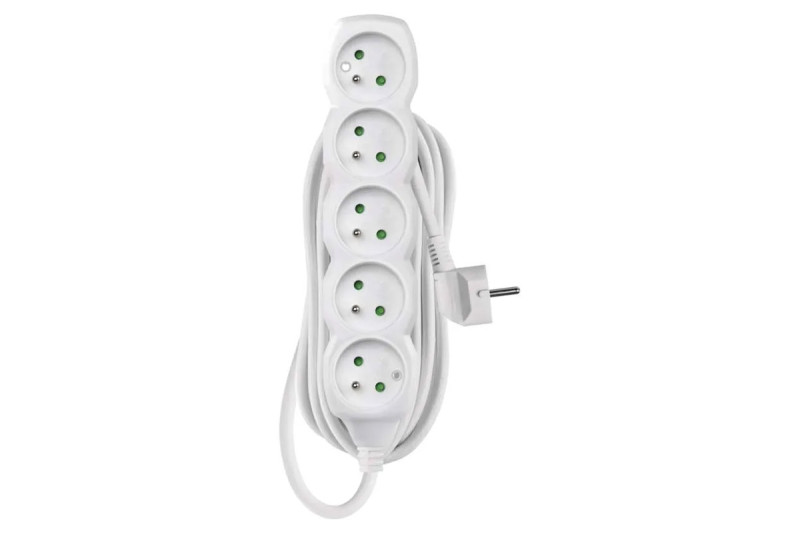 Predlžovací kábel 10 m / 5 zásuviek / biely / PVC / 1 mm2