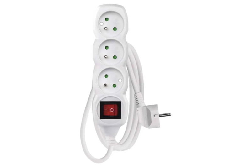 Predlžovací kábel 1,5 m / 3 zásuvky / s vypínačom / biely / PVC / 1 mm2