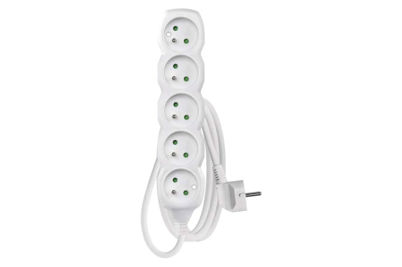 Predlžovací kábel 1,5 m / 5 zásuviek / biely / PVC / 1 mm2