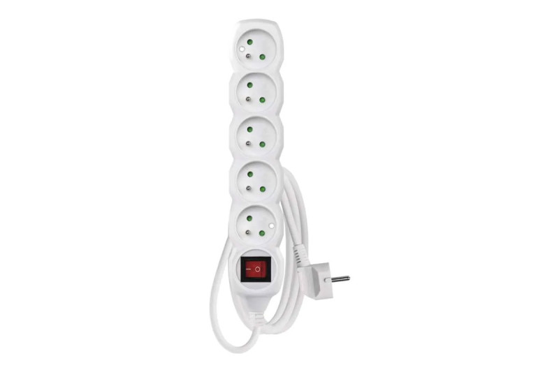 Predlžovací kábel 2 m / 5 zásuviek / s vypínačom / biely / PVC / 1 mm2