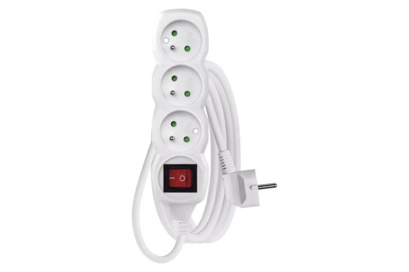 Predlžovací kábel 3 m / 3 zásuvky / s vypínačom / biely / PVC / 1 mm2
