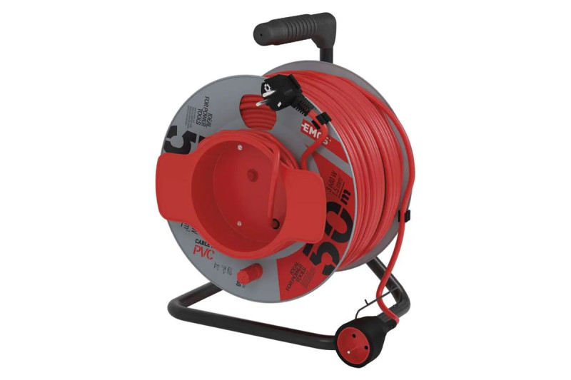 Predlžovací kábel na bubne 50 m / 1 zásuvka / červený / PVC / 230 V / 1,5 mm2