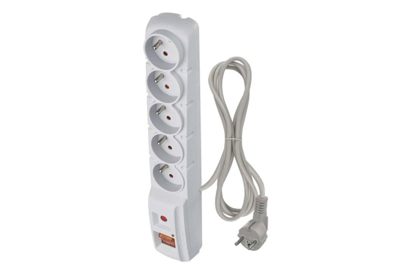 Prepäťová ochrana, 5 zásuviek 1,5m, sivá