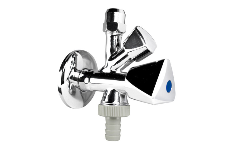 Rohový práčkový dvoj-ventil 1/2"×3/8"×3/4" s klapkou, pochrómovaný