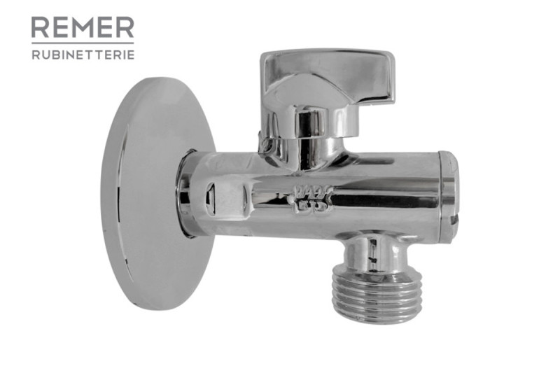 Rohový ventil 1/2"×3/8" dlhý s filtrom RR-Remer s kovovou pákou, pochrómovaný