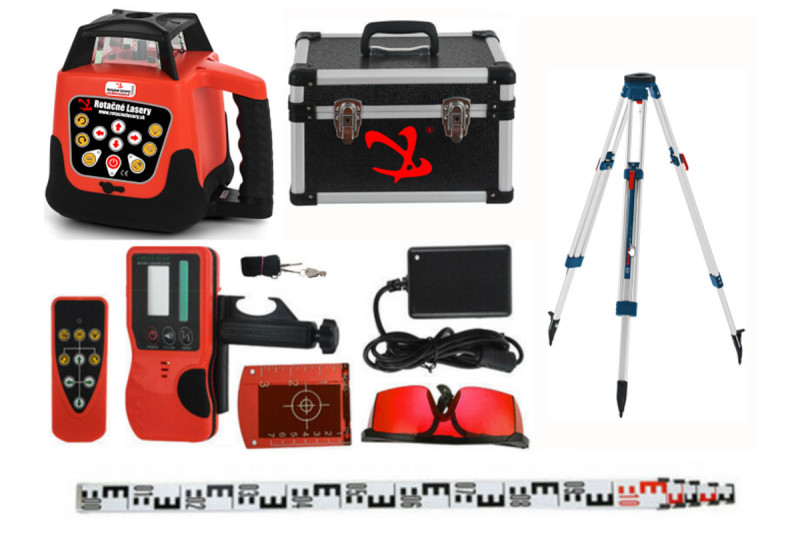 Rotačný nivelačný laser s kufríkom - komplet (červený lúč) + statív + 5m lata