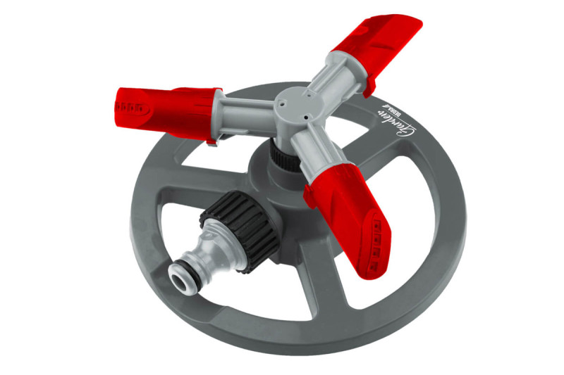 Vyrobené z odolného ABS a PP plastu Má 3 ramená So 6" okrúhlou základňou z plastu Rotačný pohyb ramien zabezpečuje rovnomerný postrek Možnosť zmeny uhla pripojenia koncov ramien 1/2" Maximálny priemer zavlažovania 11 m Maximálna zavlažovaná plocha až 85 m2