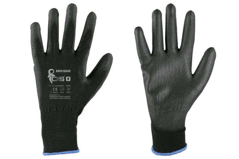 Rukavice BRITA BLACK, máčané v polyuretáne, čierne, veľ. 08