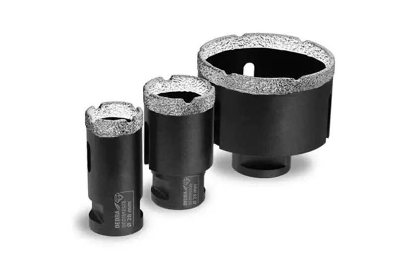 Sada 3 diamantových vrtákov Vacuum Braze d na vŕtanie do keramických obkladačiek, kameniny, betónu, tehál, skla, asfaltu, laminátov, PVC, ocele, farebných kovov,dreva atď. Technológia Vacuum Brazed zaručuje čisté a pevné spojenie medzi mentolovými zrnami a matricou a telom. Absencia spájkovaných alebo laserom zváraných prvkov (diamantových segmentov), ktoré sa môžu počas práce oddeliť od jadra, zaručuje bezpečnú prácu s nástrojom. Závit M14 umožňuje montáž jadrovej frézy na akúkoľvek uhlovú brúsku. Jadrovú frézu VB možno použiť na suchéaj mokré vŕtanie.