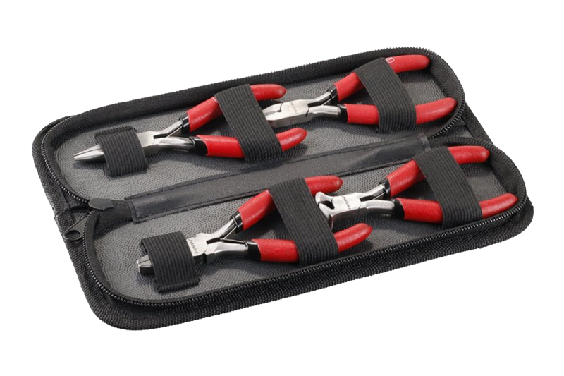 Sada miniklieští (110mm) v praktickom uzatvárateľnom púzdre, obsah sady: kombinované, rádiové, bočné a čelné štiepacie kliešte, pogumované rukoväte, pre jemnú dielenskú prácu.