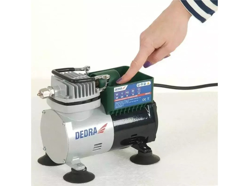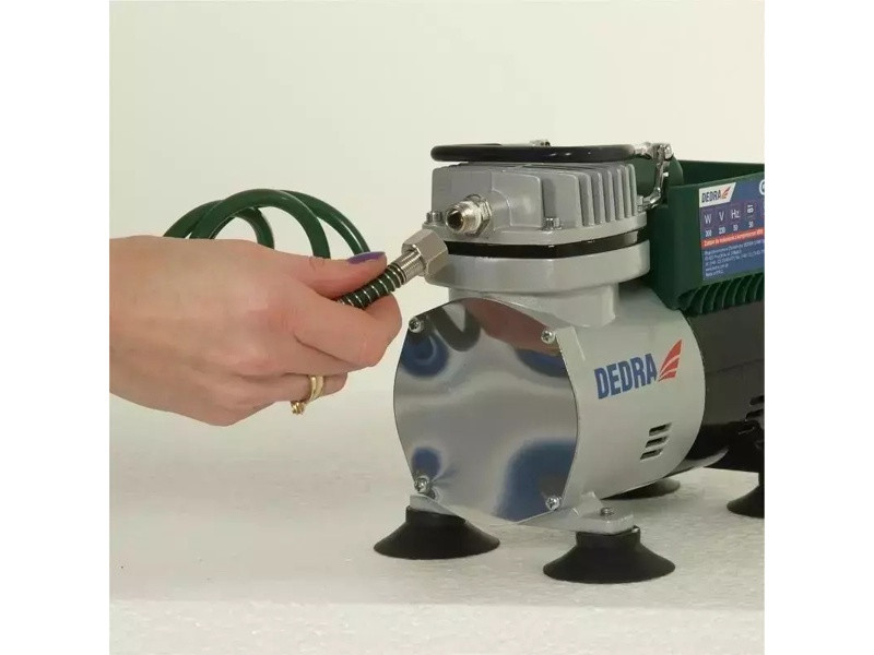 Sada obsahuje: 300W mini kompresor (maximálny prevádzkový tlak 3bar, výtlak vzduchu 50-60l/min), pištoľ na nafukovanie kolies, 0,65m vzduchovú hadicu, airbrush (jednofunkčný, nastavenie hrúbky čiary, spodná nádržka, press-in 22ml, 1,2m vzduchová hadica)