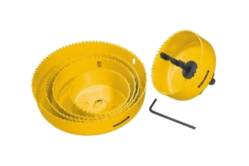 Sada vykružovacia píl z rýchloreznej ocele (HSS) v kufri. Sada je určená pre vŕtanie do mäkkého aj tvrdého dreva a sadrokartónu. Súčasťou sady sú aj dva držiaky vykružovací píl so šesťhrannou stopkou.