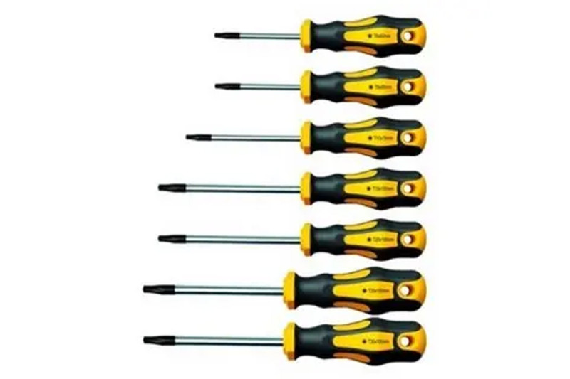 Sada skrutkovačov TORX 7-dielna je vyrobená z chróm-vanádia. Skrutkovače majú špeciálne dvojkomponentné ergonomické rukoväte, čo umožňuje vysoký prenos sily.