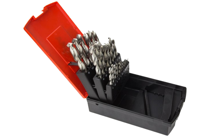 Špirálové vrtáky v PVC boxe s označením vrtákov v mm. Na vŕtanie do dreva, ocele, liatiny, temperovanej liatiny, sivej liatiny, neželezných kovov, plastov. Vrcholový uhol vrtáka 110°, špirálová časť s redukciou priemeru pre optimálny odvod pilín, špeciálne zabrúsený rezný uhol. Vysoká životnosť pri vysokom zaťažení. Praktický zaklápací box z PVC s označením vrtákov.