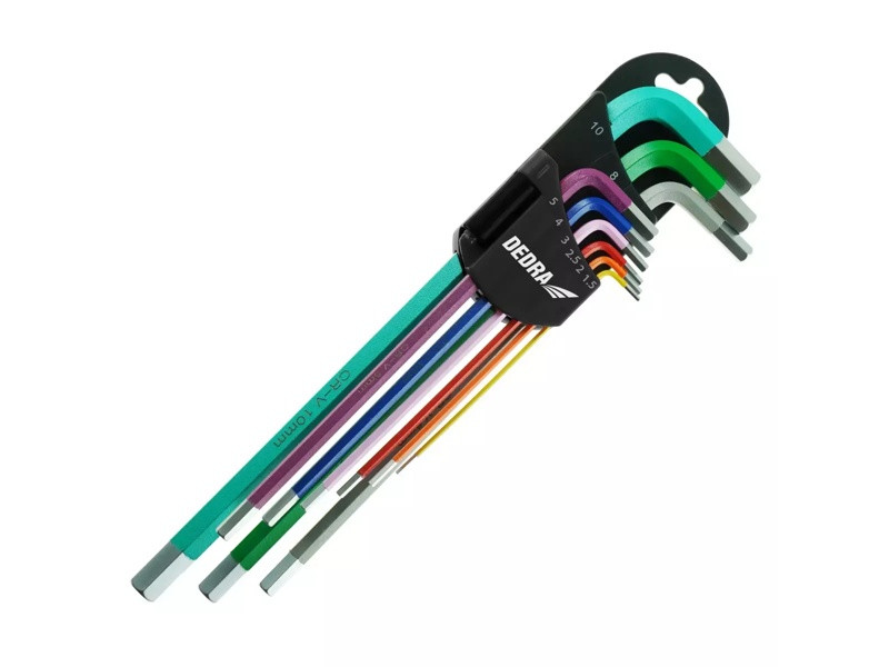 Materiál: oceľ S2; typ: HEX; farebná povrchová úprava; vrátane veľkostí: H1,5/H2/H2,5/H3/H4/H5/H6/H8/H10