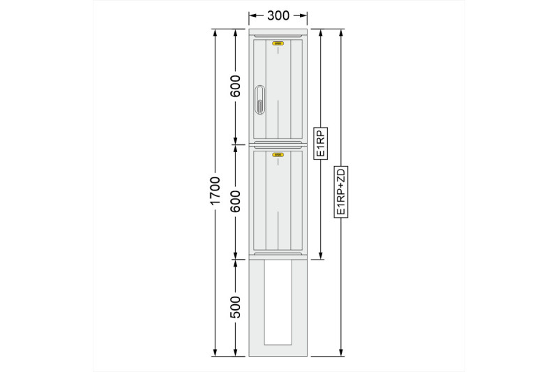 Elektromerový rozvádzač pilierový so zemným dielom trojfázový SFOS E1RP+ZD je určený pre trojfázové elektrické prípojky s jedným odberným miestom – má priestor pre 1 elektromer.